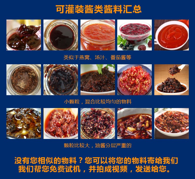 該生產(chǎn)線適合中小口徑三旋、四旋玻璃瓶調味醬的分裝,適合醬料、含顆粒黏稠物料的灌裝,物料接觸部分均采用316不銹鋼