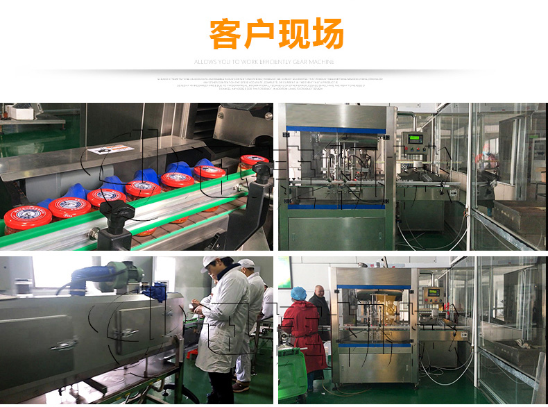 該生產(chǎn)線適合中小口徑三旋、四旋玻璃瓶調味醬的分裝,適合醬料、含顆粒黏稠物料的灌裝,物料接觸部分均采用316不銹鋼,整機304不銹鋼,符合食品衛(wèi)生標準。該機設計合理,機型小巧,立式結構,節(jié)省場地,操作方便。啟動部分均采用FESTO和臺灣AirTack的氣動元件。灌裝閥有氣動閥控制,灌裝精度更高,灌裝量和灌裝速度均可任意調整,灌裝悶頭采用防拉絲及升降灌裝裝置。