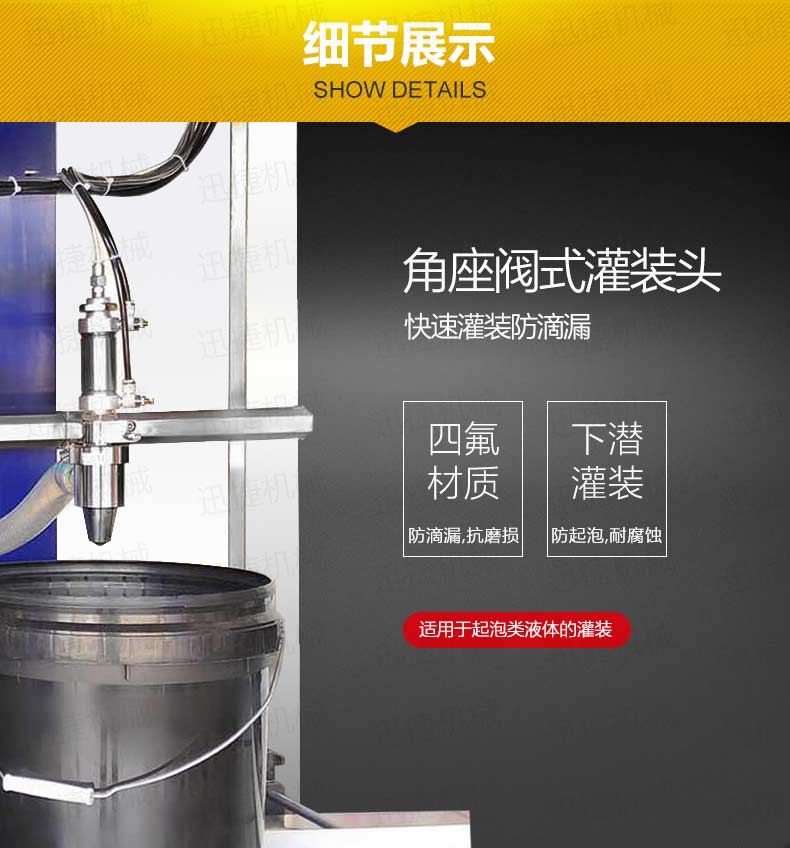 機油灌裝機適用于對4kg-25kg汽車用品類產(chǎn)品:潤滑油、防凍液、車用尿素等液體灌裝。自動完成計數(shù)進瓶、計重量灌裝、輸送出瓶等一系列操作。 特別適用于潤滑油、水劑、食用油的定量灌裝,是食品,醫(yī)藥,化妝品以及精細化工等行業(yè)的理想灌裝機。本機采用可編程控制器(PLC)、高速工控組態(tài)軟件進行實時監(jiān)控的控制,使用調(diào)節(jié)方便。整機按GMP標準要求制作,各管路連接采用快裝方式,拆卸清洗方便,與物料接觸部位及外露部位均采用不銹鋼制造。整機安全、環(huán)保、安全、美觀、能適應各種不同環(huán)境工作。