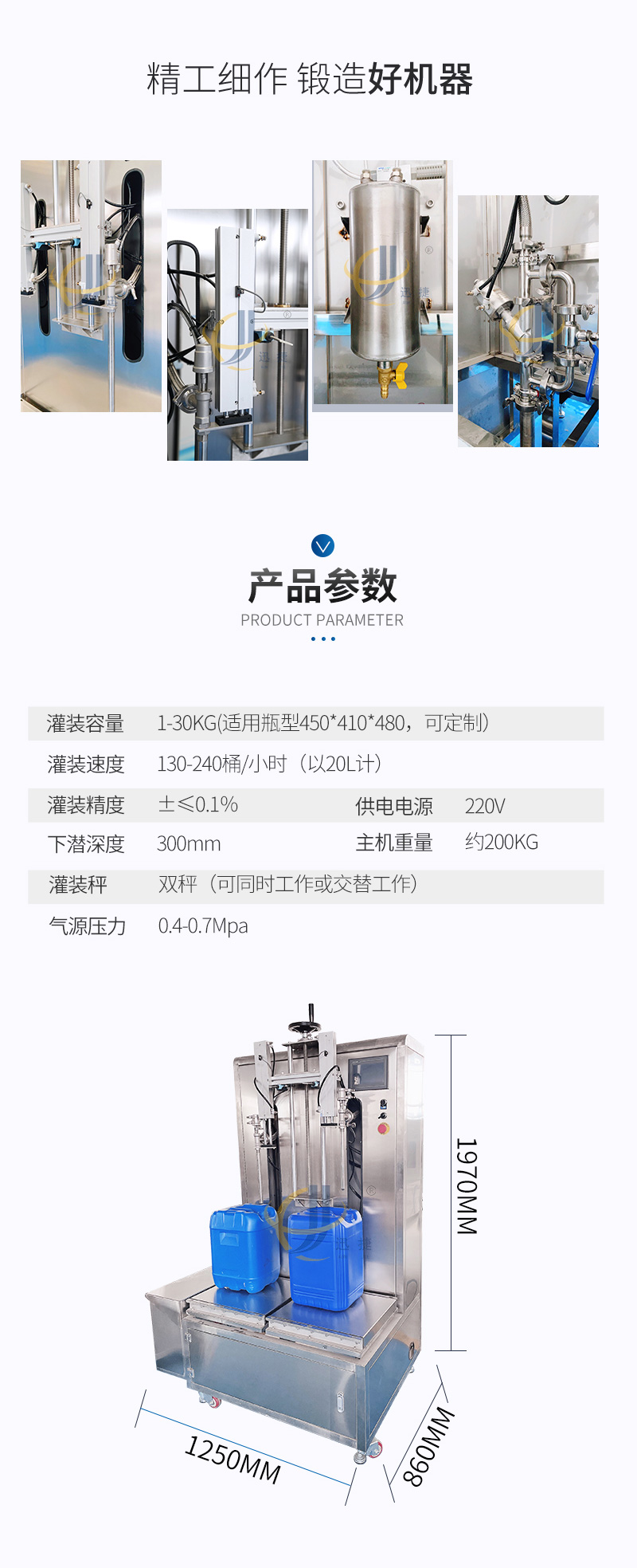 半自動(dòng)液體稱重灌裝機(jī)適用于各種水劑以及高泡類液體的灌裝。如:飲料、醋、醬油、液體化妝品、蛋白液、玻璃水等。