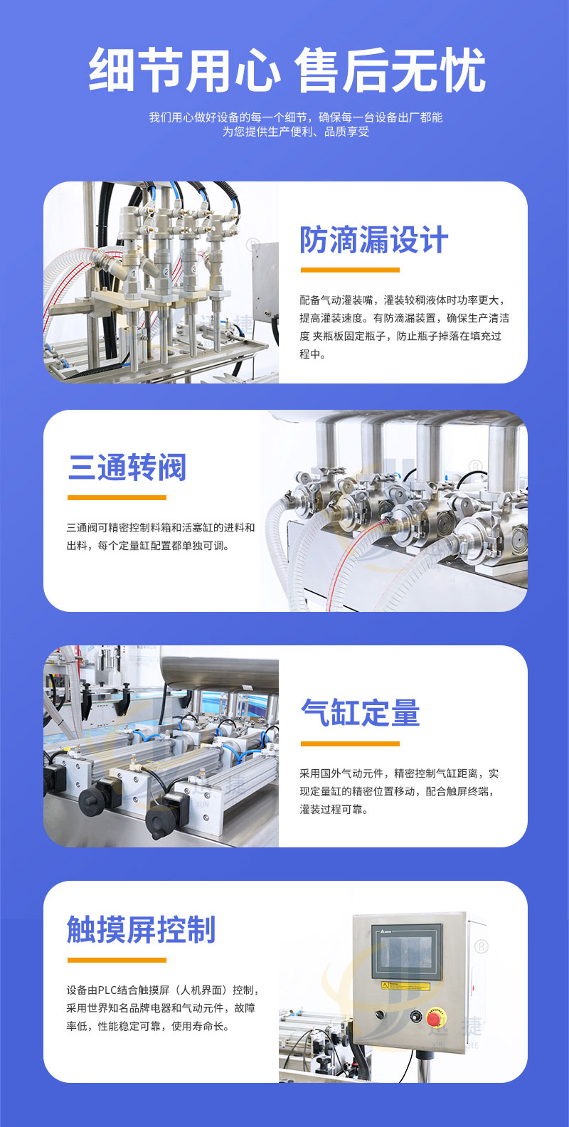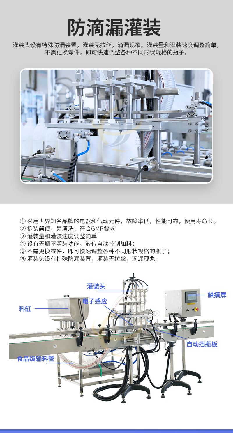 全自動膏液灌裝機適用于食品、飲料、化妝品、日化和制藥行業(yè)。灌裝頭設有特殊防漏裝置,灌裝無拉絲,滴漏現象。